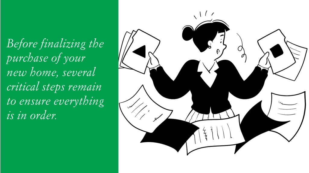 By completing these final steps, you can ensure that there are no surprises and that the home is in good condition before you move in. These precautions help protect your investment and provide peace of mind.